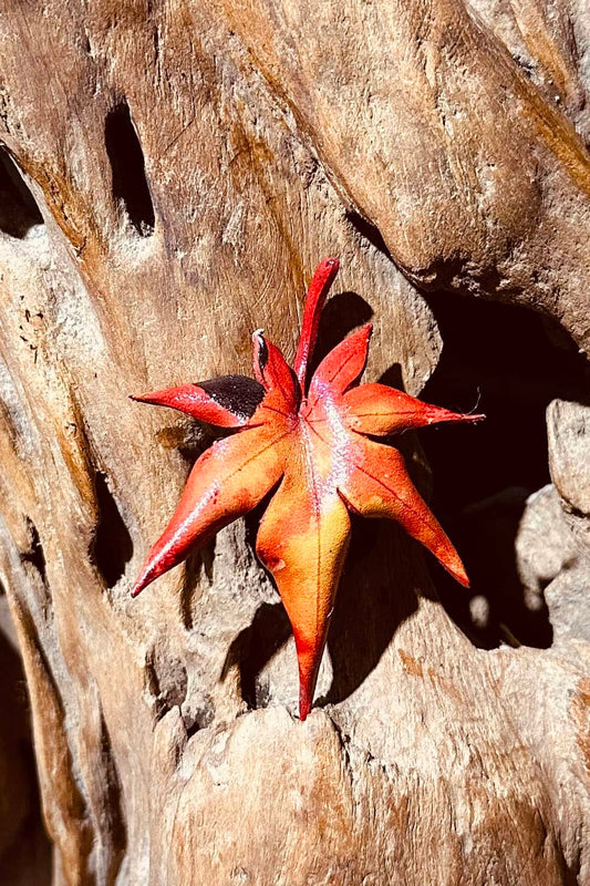 Hand-Dyed Red Maple Leaf Handmade Leather Brooch