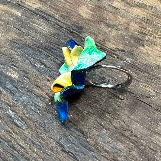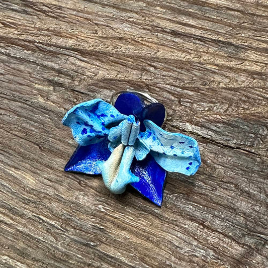 Handmade Pearl Phalaenopsis Leather Ring-Blue