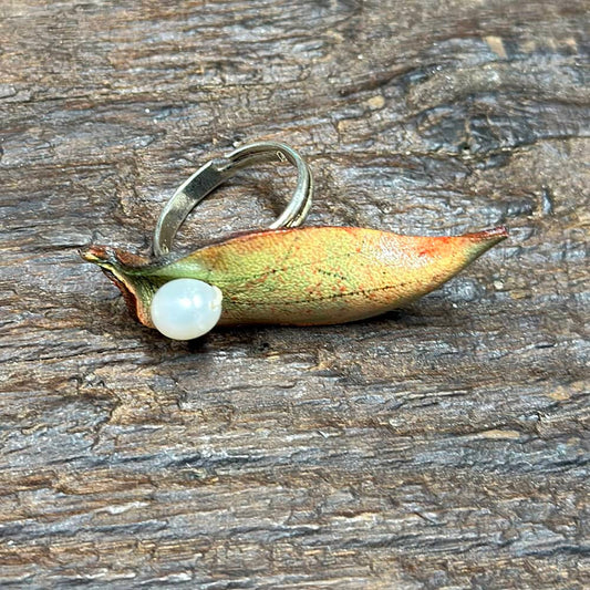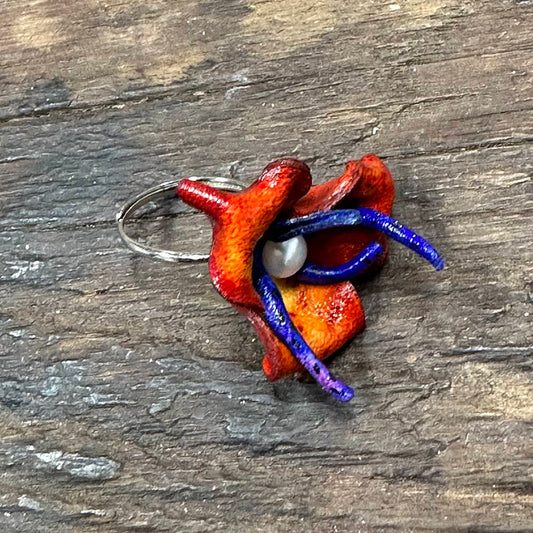 Handmade Pearl Phalaenopsis Leather Ring-Red