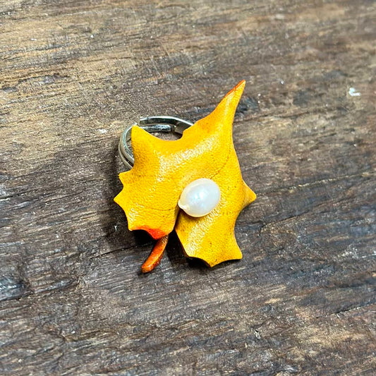 Handmade Pearl Phalaenopsis Leather Ring-Green
