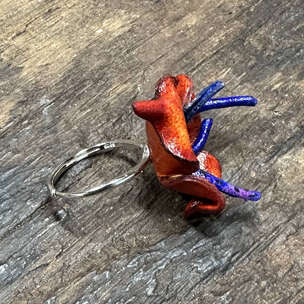 Handmade Pearl Phalaenopsis Leather Ring-Red