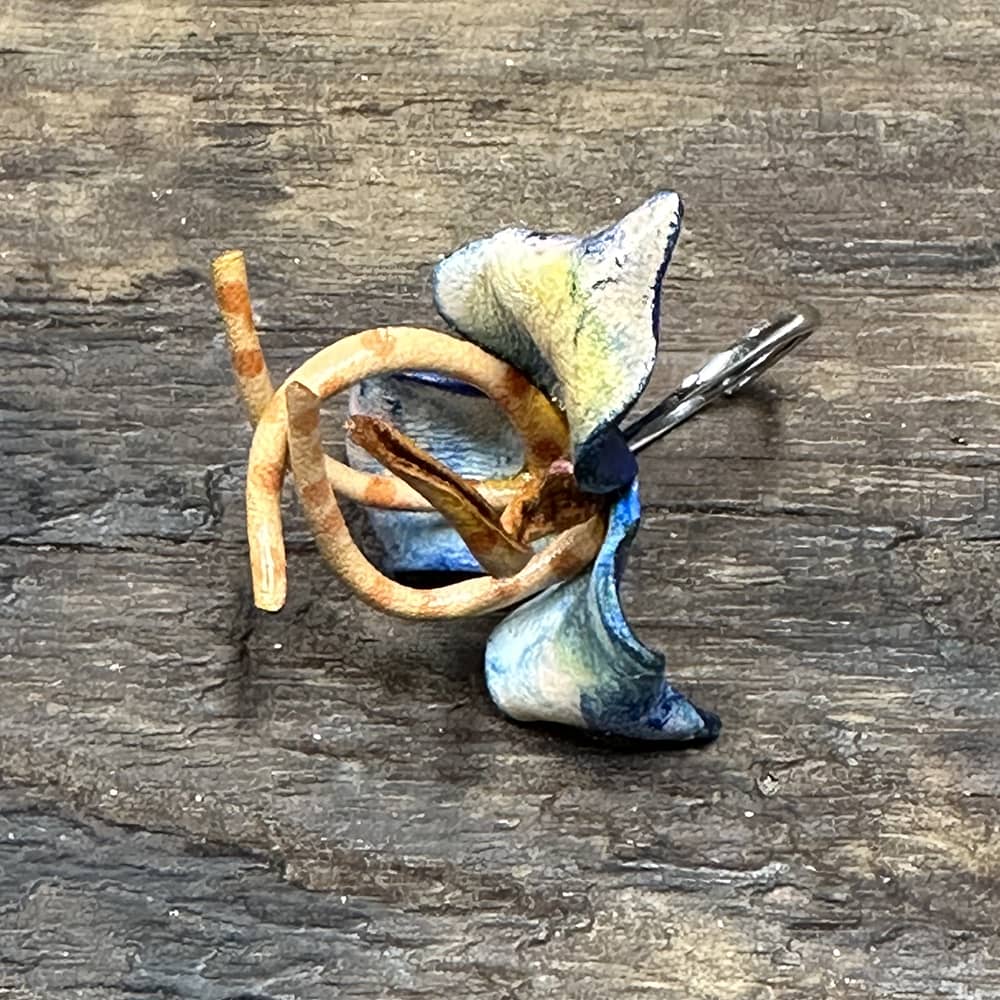 Handmade Pearl Phalaenopsis Leather Ring-Blue