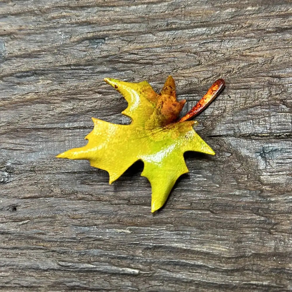 Add a touch of nature-inspired elegance to your outfit with this handmade leather sycamore leaf brooch. Crafted with care and attention to detail, this unique accessory is the perfect way to elevate your style. The intricate design and high-quality materials make it a standout piece that is sure to turn heads.