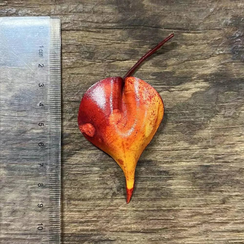 Meticulously crafted from genuine leather, the Sapium Leaf Brooch captures the intricate venation and natural contours of the sapium leaf. This botanical accessory adds sophisticated detail to lapels, scarves, or bags while showcasing exceptional leatherworking artistry. Each piece exhibits subtle variations, reflecting the unique characteristics of both the natural material and handcrafting process.