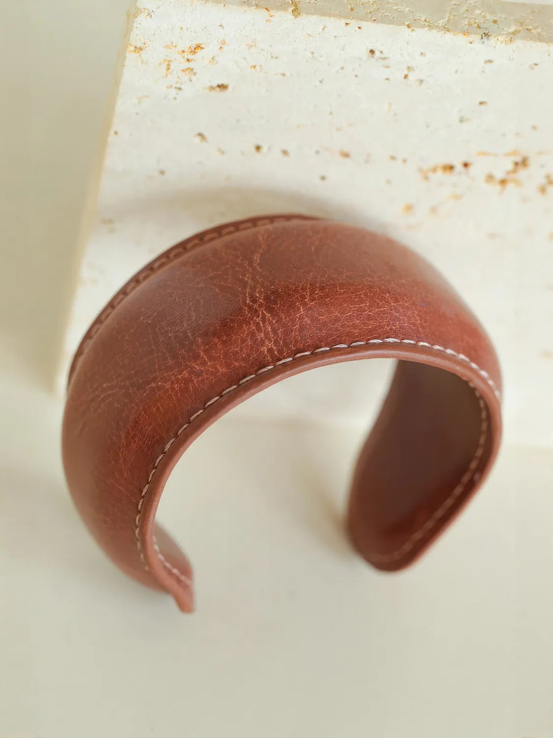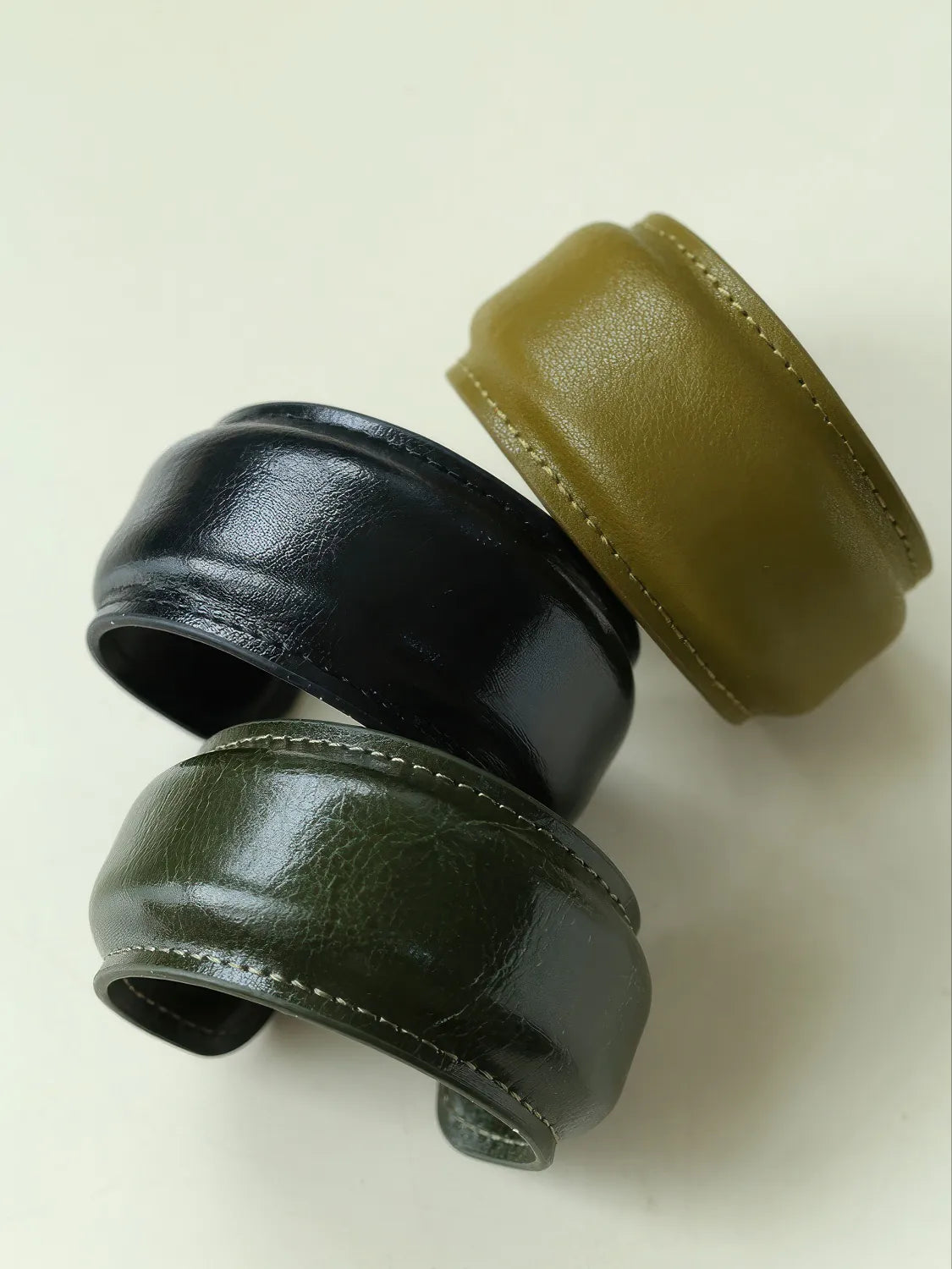 Crafted from high-quality leather, this simple open bracelet offers a sleek and timeless accessory for everyday wear. Its minimalist design ensures versatility, complementing both casual and formal styles. The open structure allows for easy adjustment, providing a comfortable fit tailored to your wrist. Durable and stylish, this bracelet is an expert choice for those seeking understated elegance.